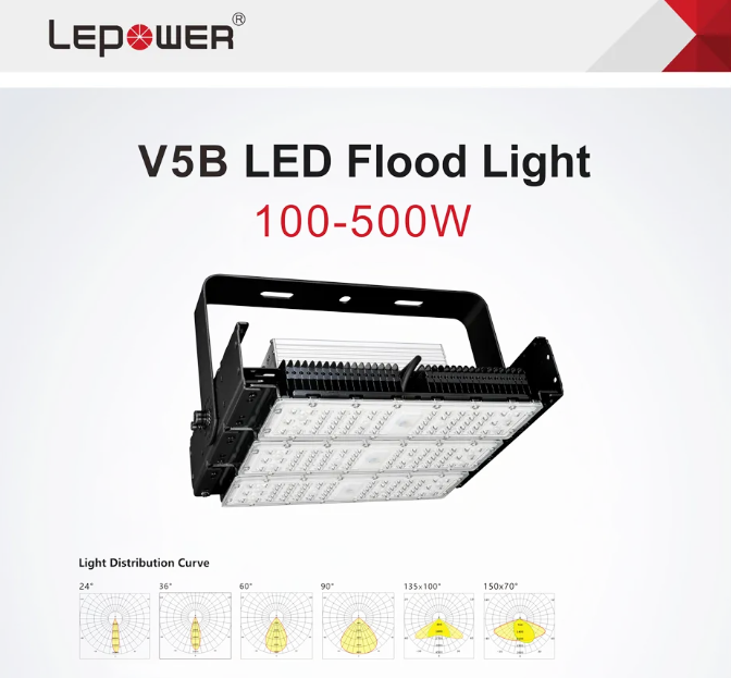 V5B球场灯高导热结构满足流体力学散热技术,降低温升,延长灯具使用寿命。采用高亮LED灯珠,出光均匀,照射角度可调,投射距离远。可根据不同情况要求选择光束角度,150可调支架,通过CE、RoHS证书。