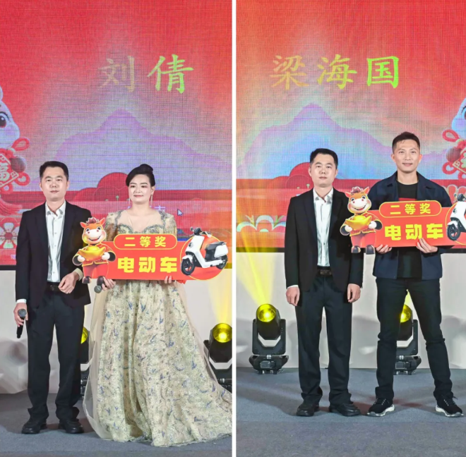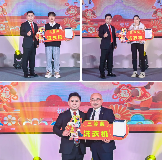 紧接着,“惊喜大奖”环节再次将气氛推向顶点,当幸运降临的那一刻,两名员工喜获今年劲爆礼品,全场爆发出雷鸣般的掌声与祝贺。